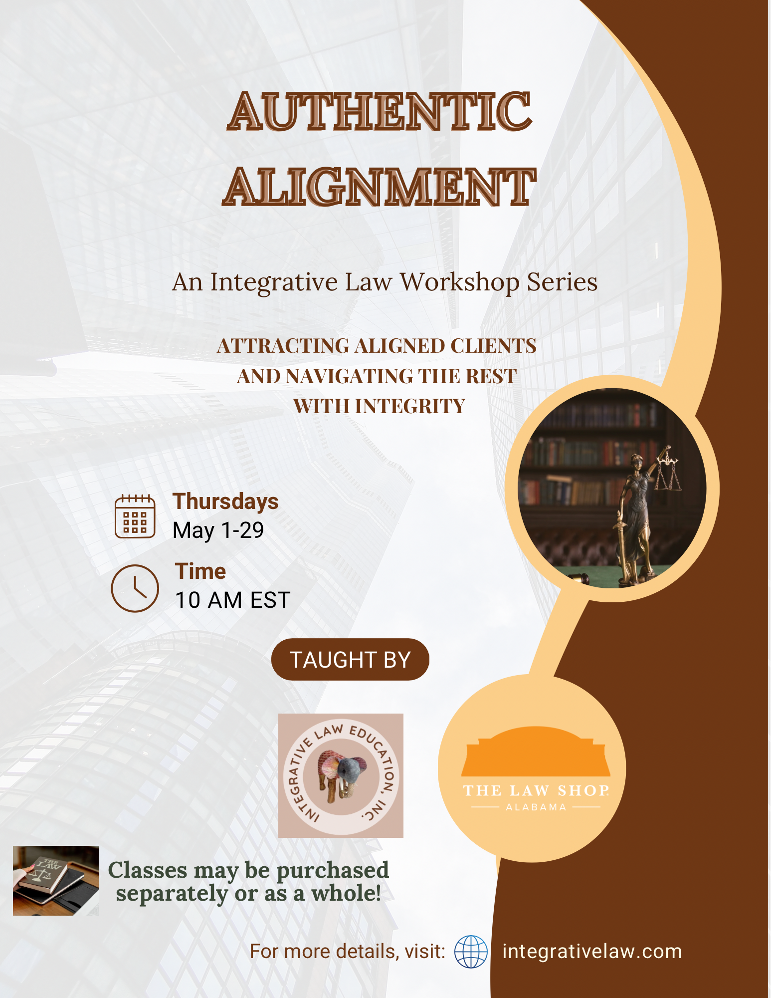 This workshop is designed for purpose-driven attorneys who are ready to step into a practice that feels as good as it looks on paper. Whether you're just starting to shift how you work or you’ve been practicing in a values-based way for years, this workshop will help you strengthen your alignment, attract the right clients, and handle misalignment with clarity and confidence.